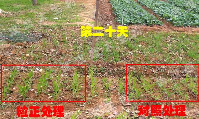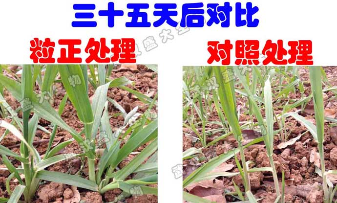 自公司研發(fā)部于11月18日,在盛大生物試驗田開展小麥(3-4葉期)施用“粒正”升級試驗,分別在第七天和第二十天后觀察使用效果(見附圖)后,第三十五天效果再現(xiàn)奇跡!