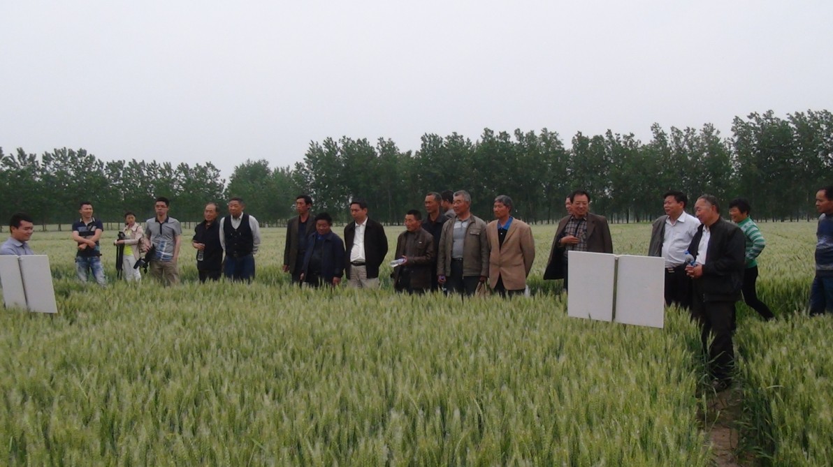 上圖為漣水縣農資經銷商及種田大戶們正在觀摩施用綠舟的小麥