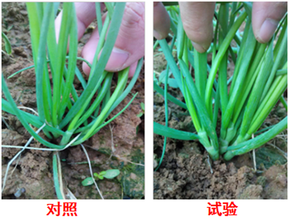 圖2 沖施“施哈”(右圖)蔥生長快、莖葉長
